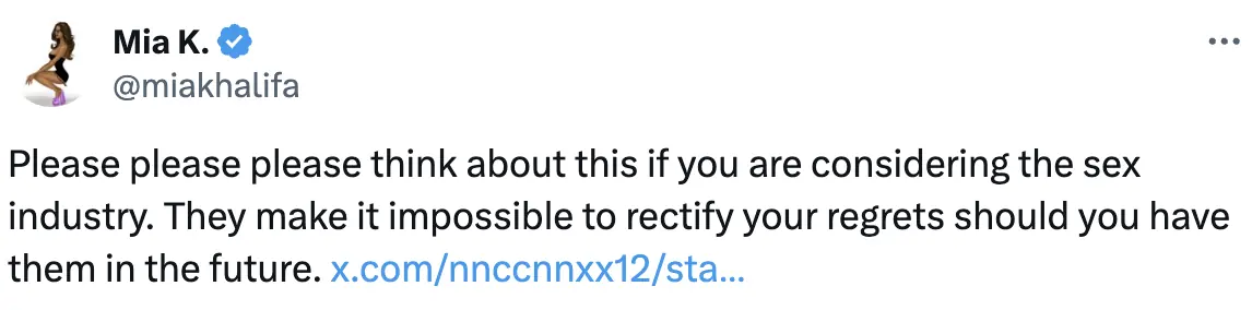 Mia Khalifa has come out with some advice for other women, begging them not to get into the p*rn industry.