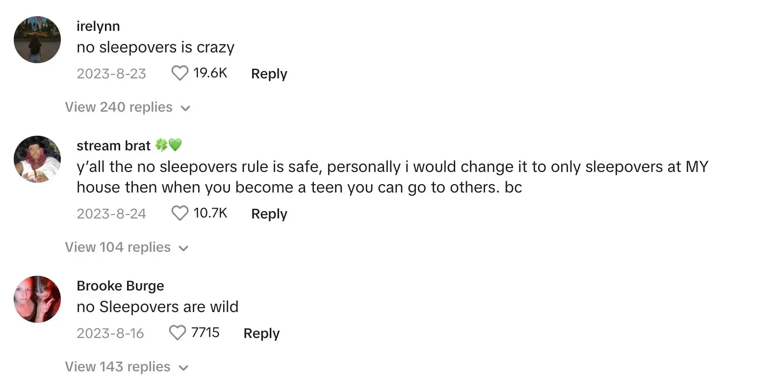 "She won’t ever be allowed to have sleepovers with her friends? No judgement. Just those were some of my best childhood memories," wrote one user .