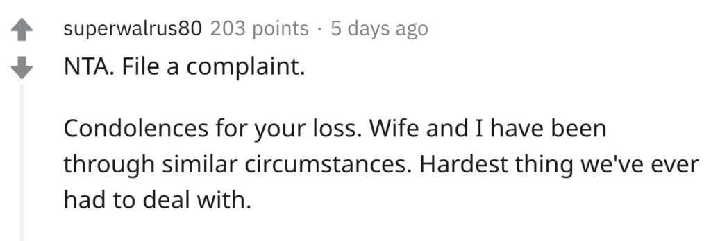 "Condolences for your loss. Wife and I have been through similar circumstances. Hardest thing we've ever had to deal with."