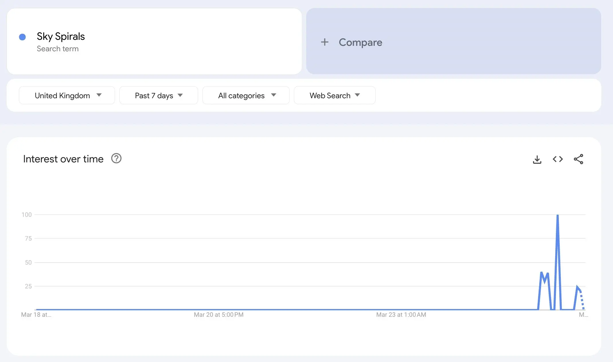 The bizarre sight led to many people taking to social media to ask what the swirls could be. In fact, Google Trends shows a huge spike in searches from UK users regarding "sky spirals":