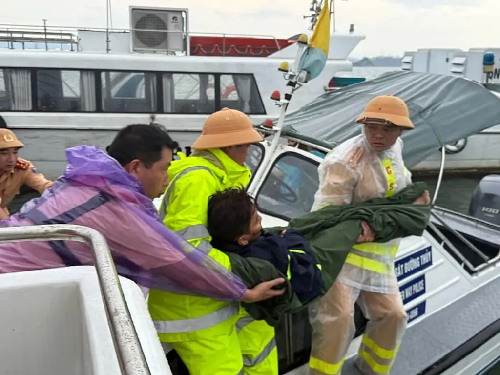 The vessel, which had been on a sightseeing tour of Ha Long Bay, Vietnam, overturned after being rocked by heavy rain and wind, VNExpress reported.
